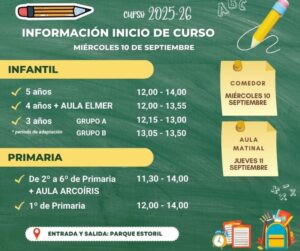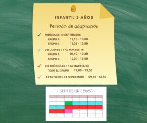 A continuación, compartimos los horarios de entrada y salida del primer día de clases, el 𝙢𝙞é𝙧𝙘𝙤𝙡𝙚𝙨 𝟭𝟬 𝙙𝙚 𝙨𝙚𝙥𝙩𝙞𝙚𝙢𝙗𝙧𝙚, así como la información sobre el período de adaptación para los alumnos/as de 3 años.